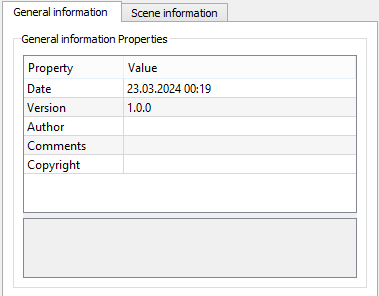 General Information Tab The General Information Tab allows to set various properties of the document. By clicking on one property, its help appears in the bottom box.